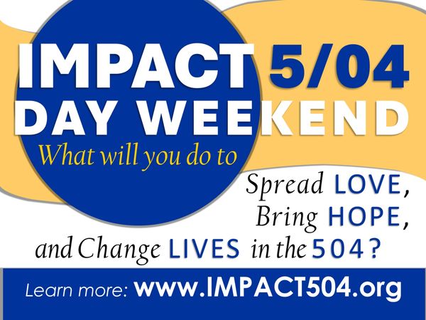 IMPACT504’s 5/04 Day Weekend of Service, the weekend / week of May 04, is a citywide call to “Spread LOVE, Bring HOPE, and Change LIVES.” This annual initiative rallies New Orleans residents, businesses, and organizations to volunteer, donate, and uplift communities. More than an event, it’s a movement to create lasting impact and inspire positive change across the 504.